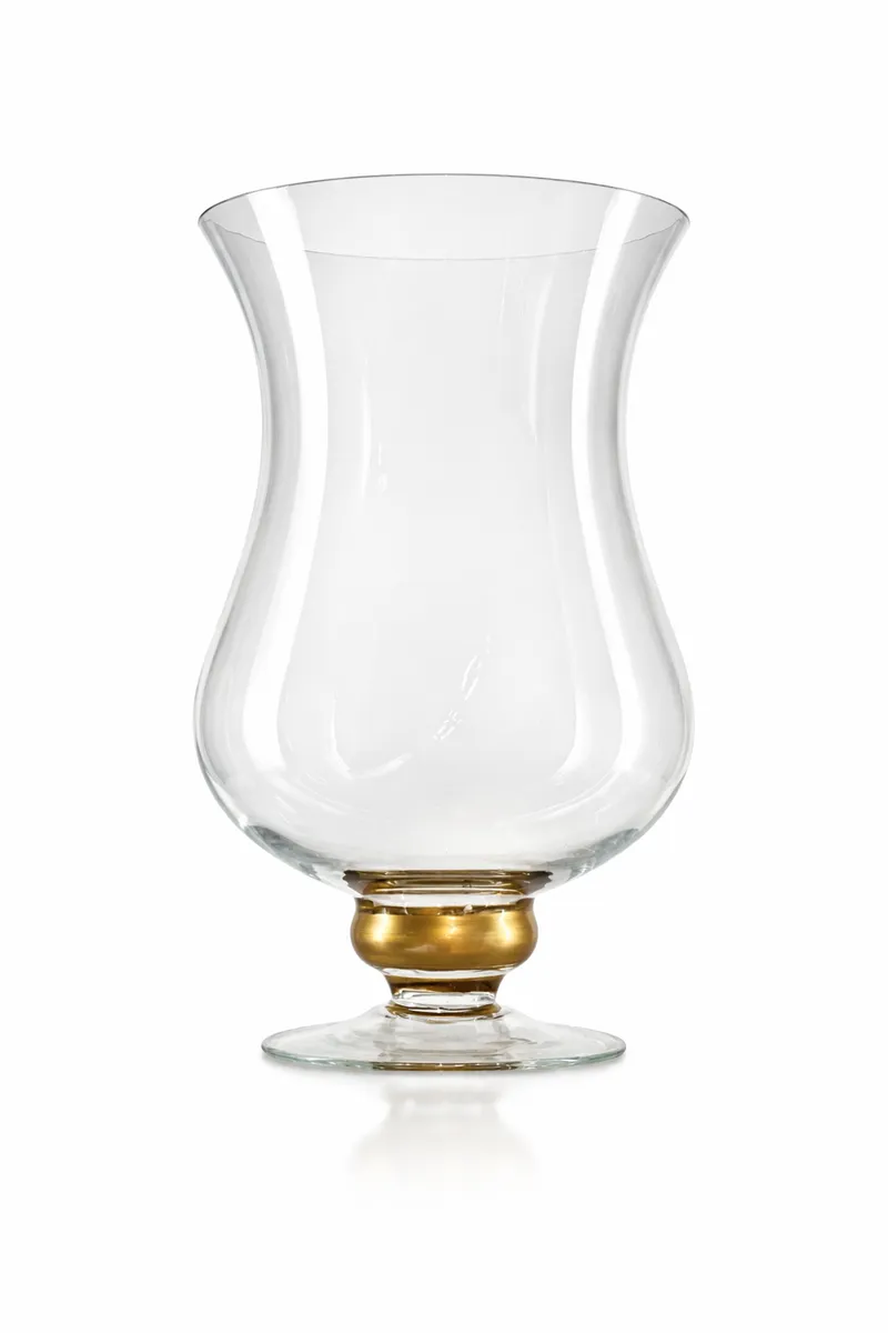 Элегантная стеклянная ваза с утончённым силуэтом и роскошным золотым основанием. Сочетание прозрачного стекла и тёплого золота создаёт эффект дорогого салонного декора. Эта ваза сразу добавляет интерьеру статус, свет и ощущение премиальности.