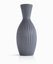 Стильная керамическая ваза холодного серого оттенка с вытянутым силуэтом и рифлёной фактурой. Сдержанная, уверенная, современная — она идеально подчёркивает форму букета и добавляет интерьеру ощущение порядка и вкуса.